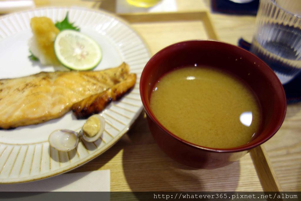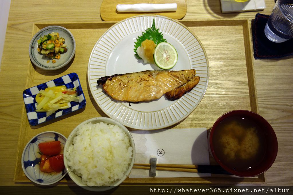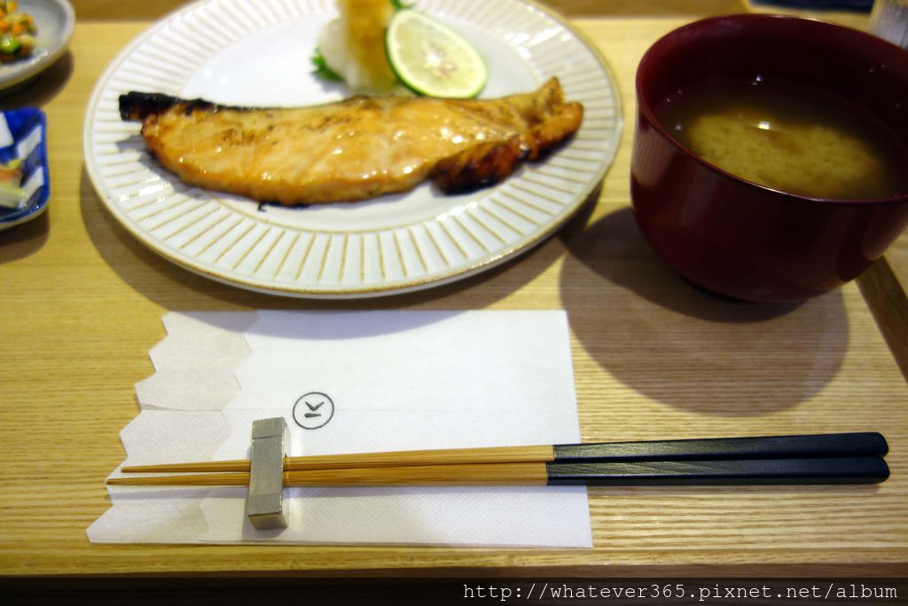 先登場的是鹽麴燒鮭魚定食($320)。這鮭魚的形狀好像台灣,完整的魚塊處理的很好,紋路看起來很新鮮。