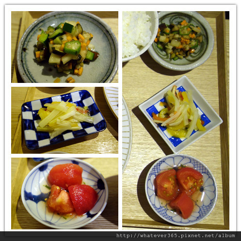 三樣精緻小菜也是一點都不馬虎,餐具也配得很有巧思。剝皮的漬蕃茄、吃不出來是什麼疑似是青木瓜絲、日式料理怎麼少得了會牽絲的秋葵。每一小碟吃起來都很清爽,然後還想再來一碟。